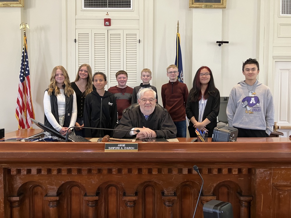 Thank you to the following local leaders who shared a wealth of knowledge with our students including Judge Sanford Church, District Attorney Susan Howard, County Clerk Nadine Hanlon, County Historian Catherine Cooper, Associate Court Attorney Kathy Harling, NYS Court officers, and downtown Albion Pratt and Day buildings owner Mike Bonafede.