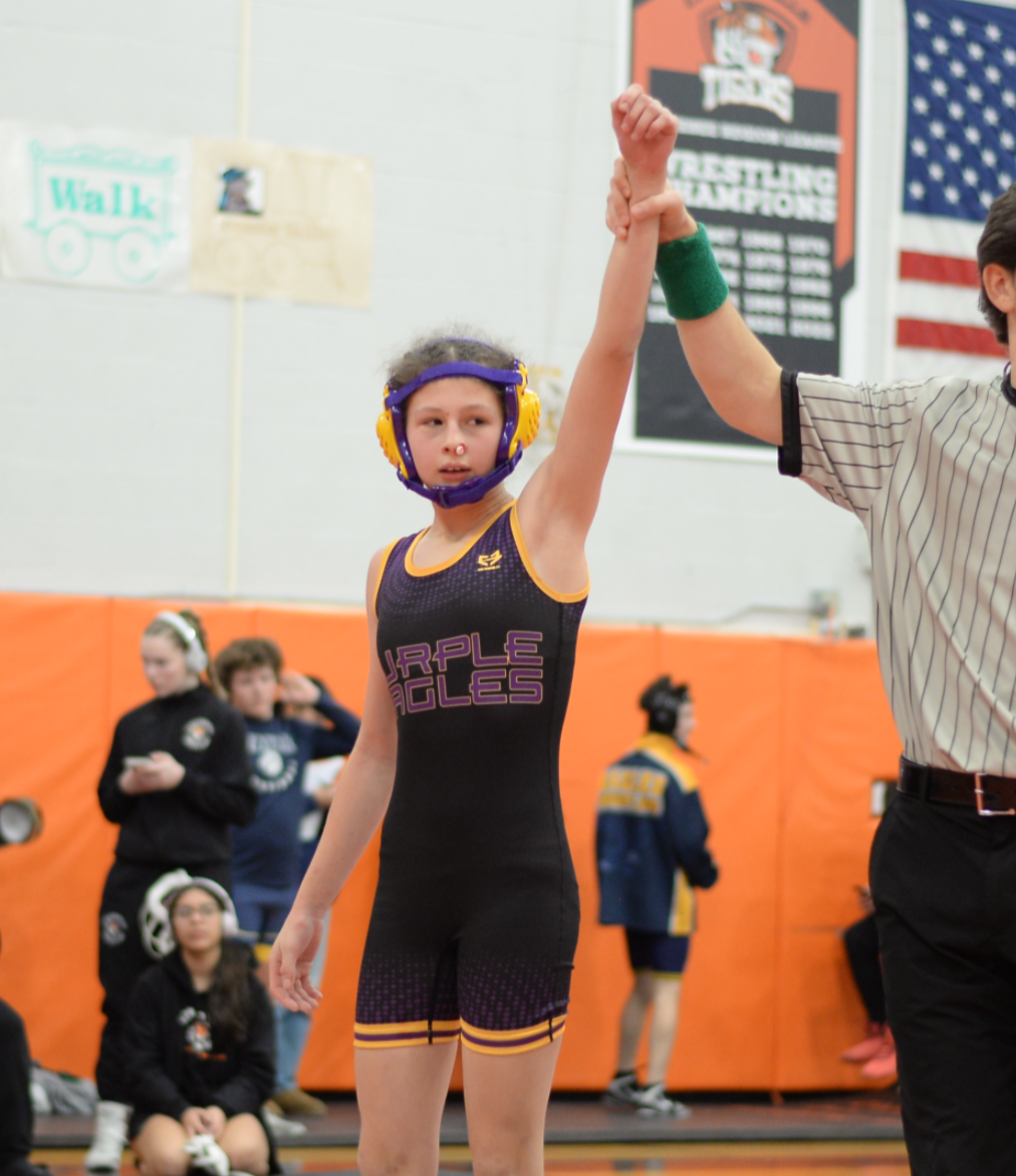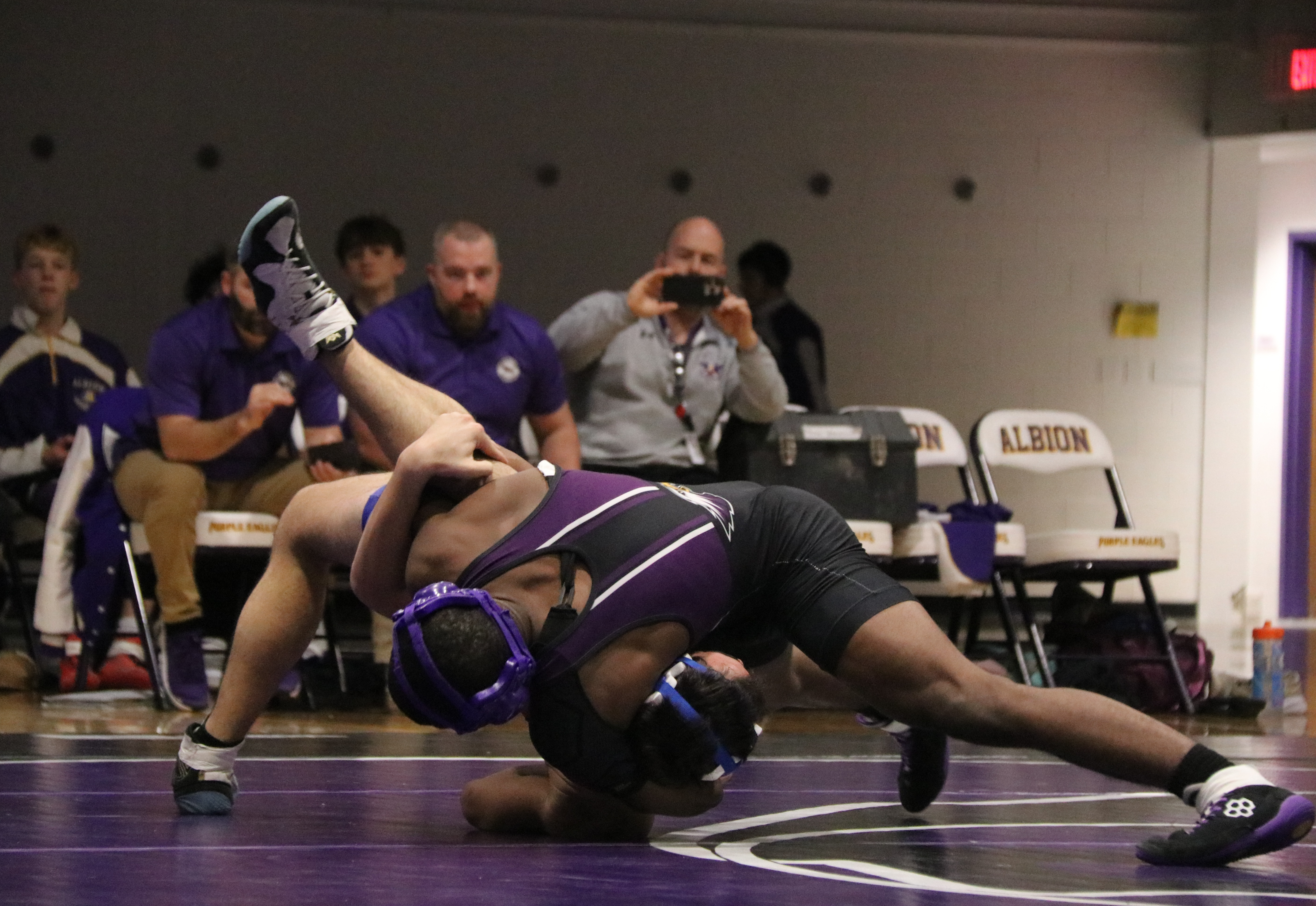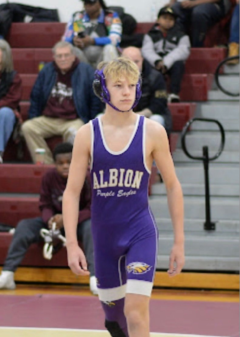 Congratulations to Jackson for dominating his opponent and sealing the win for the Purple Eagles against Byron-Bergen. The dual meet score was 38 to 36 heading into the final match and Jackson determined the win for the team with a pin in the second period.