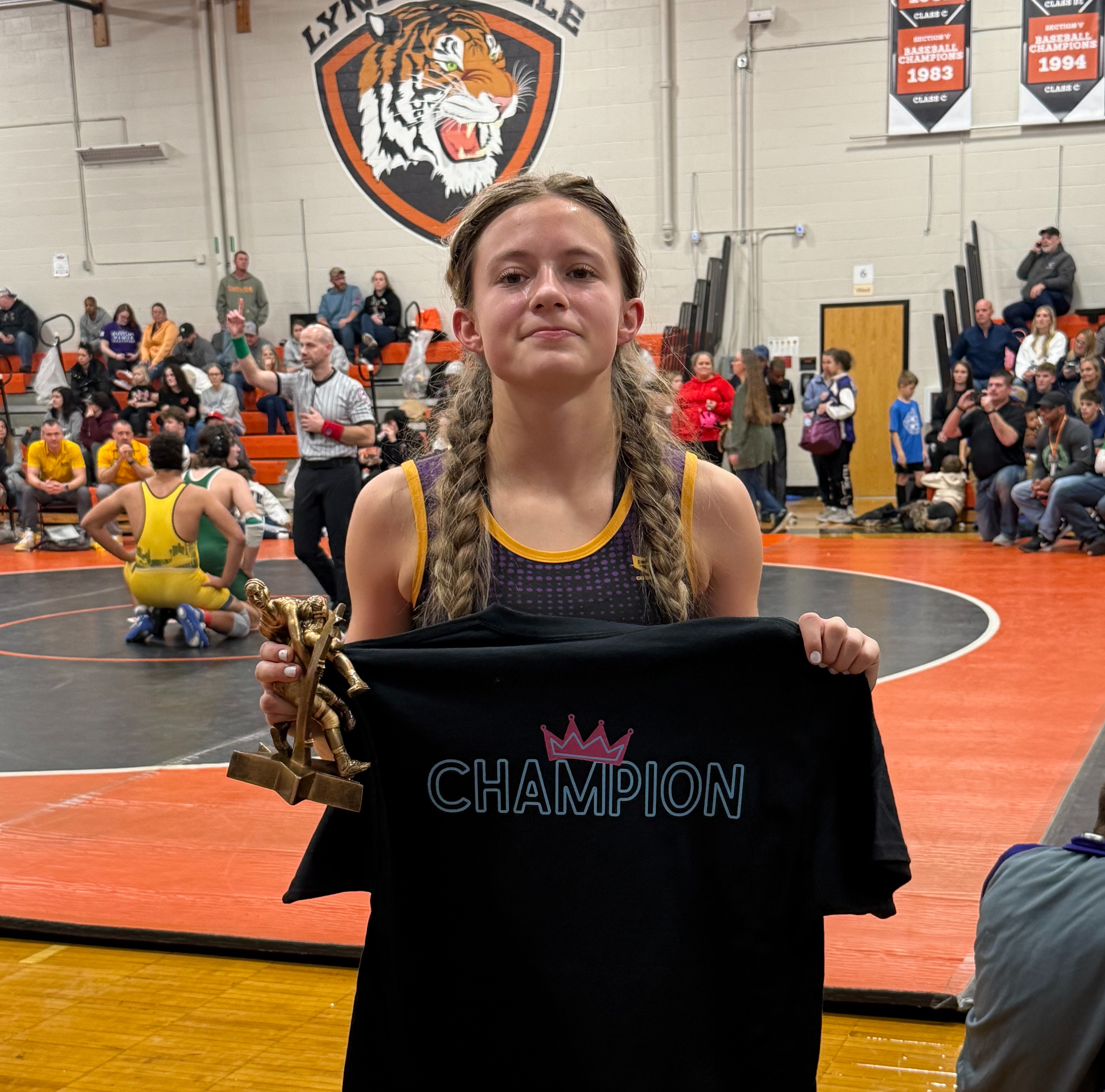 Congratulations to Mia on going beast mode this past weekend at the Lyndonville wrestling tournament. Mia went 3-0 with three dominant pins capturing the championship.