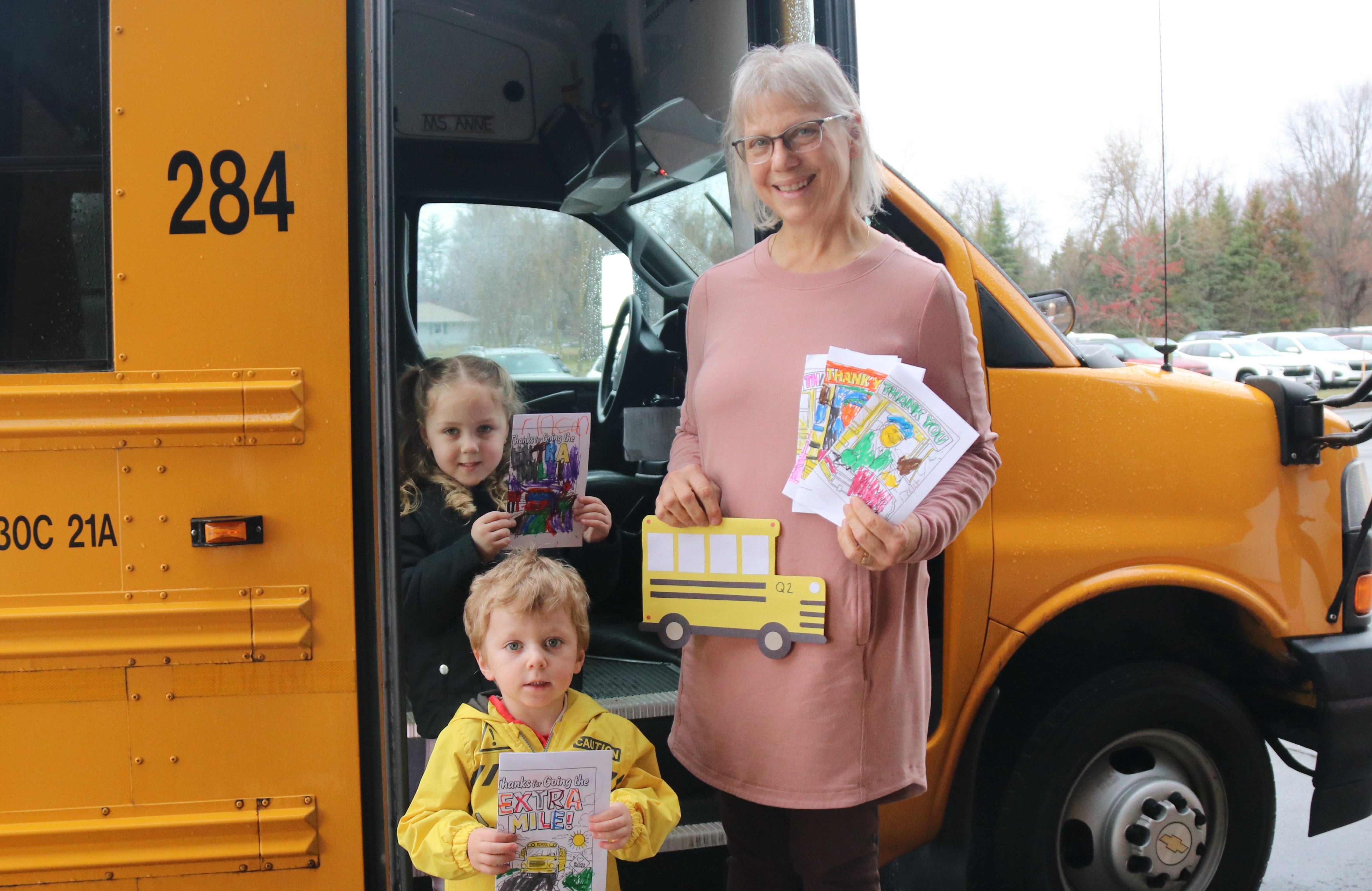 "Thank you for going the extra mile!" Students gift hand-made thank you cards for Bus Driver Appreciation Week.